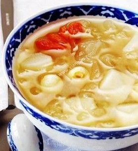 銀耳含有豐富的膳食纖維,可清腸胃減少腸道吸收脂肪,并促進排宿便,是優(yōu)質的減肥食品。如果得了結膜炎,可以多喝些銀耳羹有一定的輔助治療功效。 材料