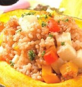發(fā)芽米飯1碗,南瓜1個,山藥丁100g,鹽適量,醬油適量