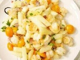 材料:,鮮蝦仁6兩,山藥3兩,蛋白少許,洋蔥1/4顆,大蒜4粒,太白粉少許,洋香菜末少許,小蕃茄10顆