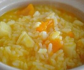 第三步取米飯加入高湯500-600ml燉煮,開鍋后轉(zhuǎn)小火慢慢燉30分鐘。最后加入南瓜、山藥和剩下的高湯,大火煮開轉(zhuǎn)小火熬15-20分鐘,加鹽、胡椒粉,雞精適量就可以了。