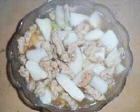 2、鍋熱加水,放入山藥煮熟后,加炸肉,再加醬油、醋、蔥、姜、鹽(自己愿意吃什么就加什么),煮一會出鍋就行了。