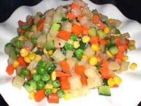 4、汆燙過的五彩粒已經(jīng)呈半熟狀態(tài),所以烹炒時(shí)間不易過長,以免失去爽脆之口感;
