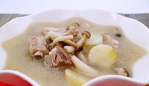 6. 再加入蟹味菇,適量鹽,大火幾分鐘后轉(zhuǎn)小火燜燉至湯濃肉酥。